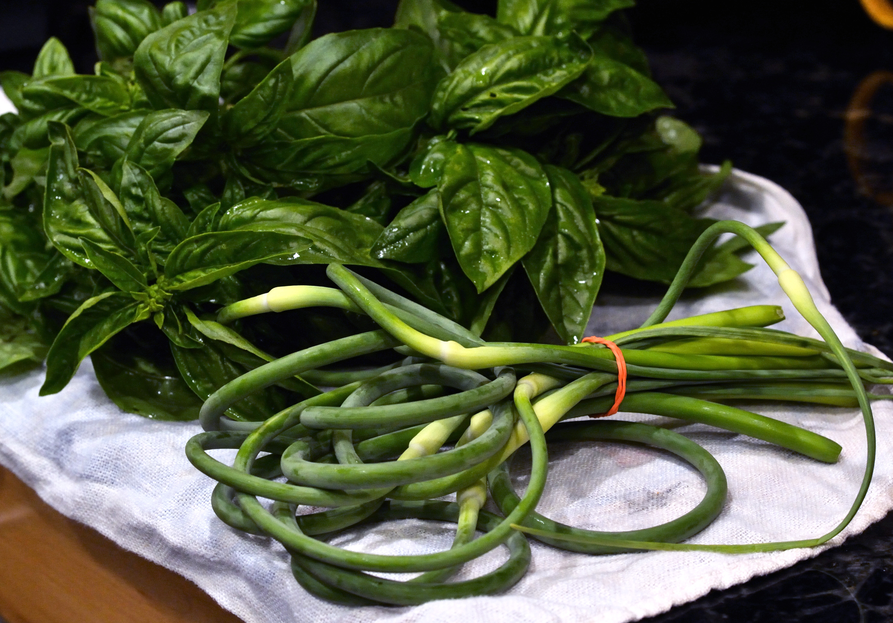 Key is high quality produce. You could smell this basil across the kitchen. And the scapes were nice and firm.