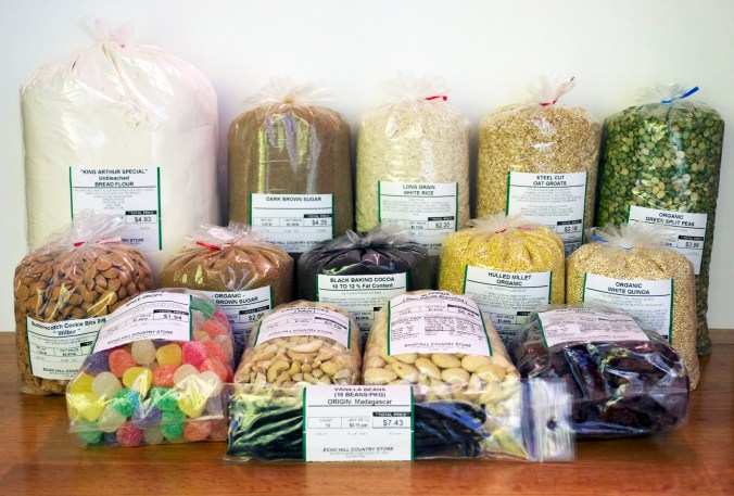 3 of us took the morning on Saturday to sneak away & venture to Echo Hill before the party!!! So exciting!!! We each managed to buy a cardboard box (unfortunately, we forgot our reusable bags) FULL of goodies. Now, I did have a list going into this wonderful experience of happiness & joy, but I abandoned it slightly upon arrival. Some things I wanted that I did not purchase include: amaranth, dark chocolate chips (I couldn’t find any!), barley, assorted flours, cardamom, chili powder, cajun seasoning (I still have a ton), and everything else in the store : )